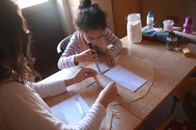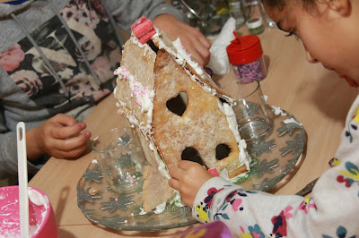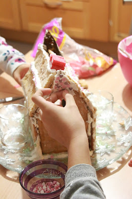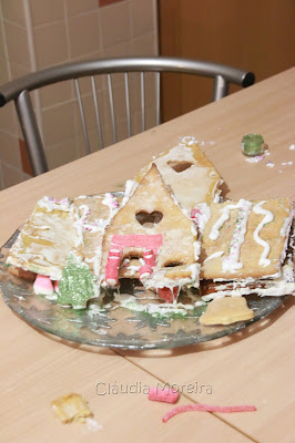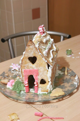 Antes de iniciar convém ler a receita, já que recomendam que a massa repouse 1 a 2 horas antes de estender para as paredes e telhado. Também recomendam que depois de irem ao forno devem ficar bem sólidas e por isso aguardar pelo dia seguinte para dar forma à casa. E ainda, depois das paredes coladas e de pé deve esperar-se mais umas horas antes do telhado e outras quantas antes de enfeitar....