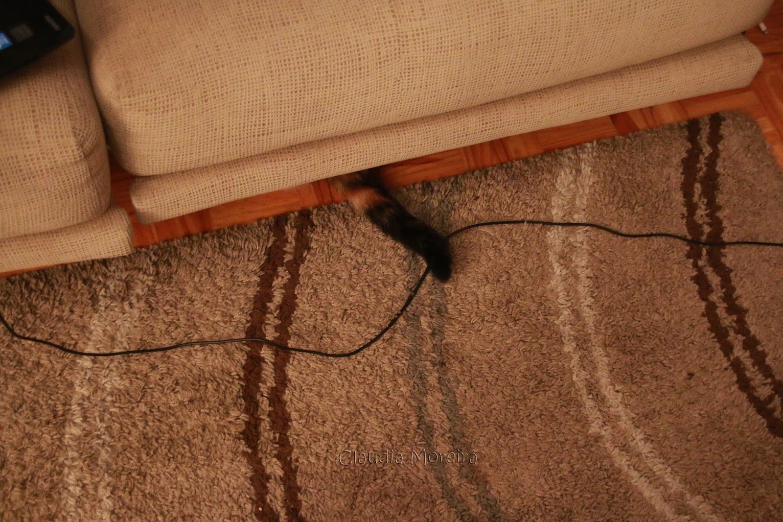 A gata mudou-se de uma cadeira para a cama, talvez sem nunca sair do estado de sonolência.