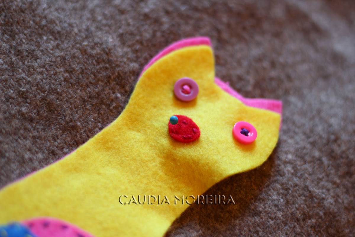 .....numa tarde de costura um alfinete de cabeça colorida colocado num nariz de um gato de feltro dá rapidamente origem a este comentário: