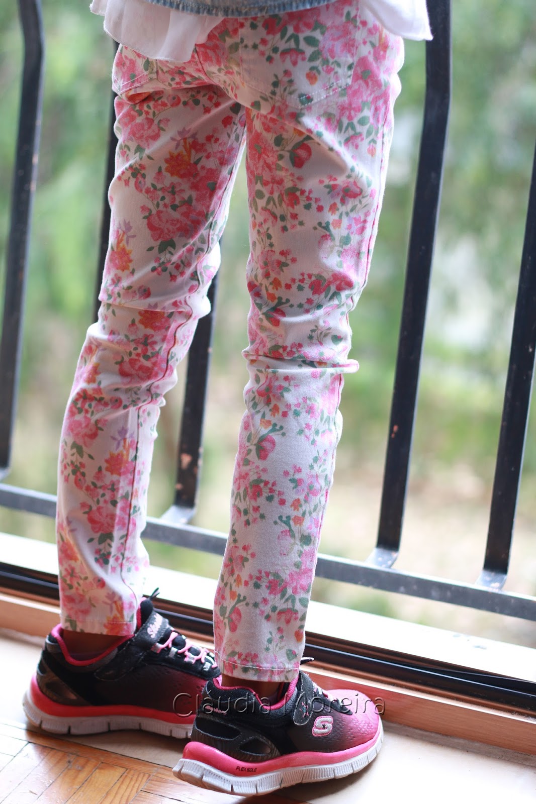 E ela vestiu calças brancas e floridas em dia de chuva. E já repetiu em dia de sol.