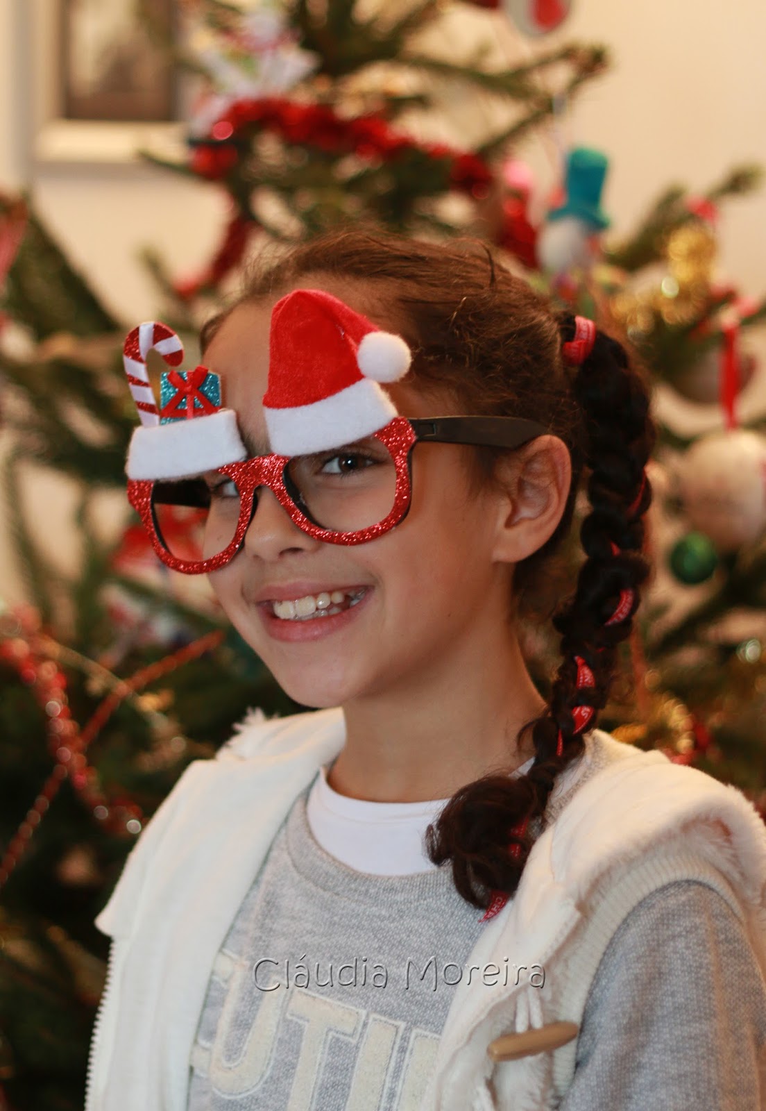 À hora de almoço juntaram-se os óculos à fita nas tranças.