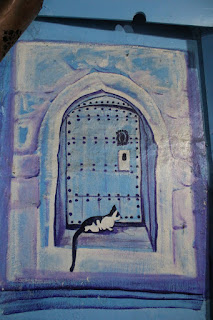 Por todo o lado existem as lojas tradicionais onde vendem a cal tingida de várias cores para as casas, portas, etc. Os marroquinos não gostam de ser fotografados. Nota-se que são frequentes as vezes em que se afastam, ou viram-se e em alguns casos fazem um sinal com a mão, sem alarido. É necessário respeitar isso. Existem uns chapéus típicos que poderíamos pensar que é só para turista ver e comprar, mas os habitantes de Chefchouen usam mesmo. Apesar do calor é uma cidade que se torna mais fresca porque tem muitas zonas de sombra, provocadas pelas videiras que cobrem algumas ruas pelo facto das ruelas serem estreitas.