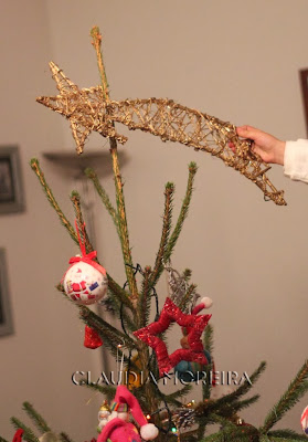 Também já tentei colocar uma estrela normal, mas a nossa é uma estrela cadente, o que também se tornou já tradição. Que lhes traga muitos desejos realizados!