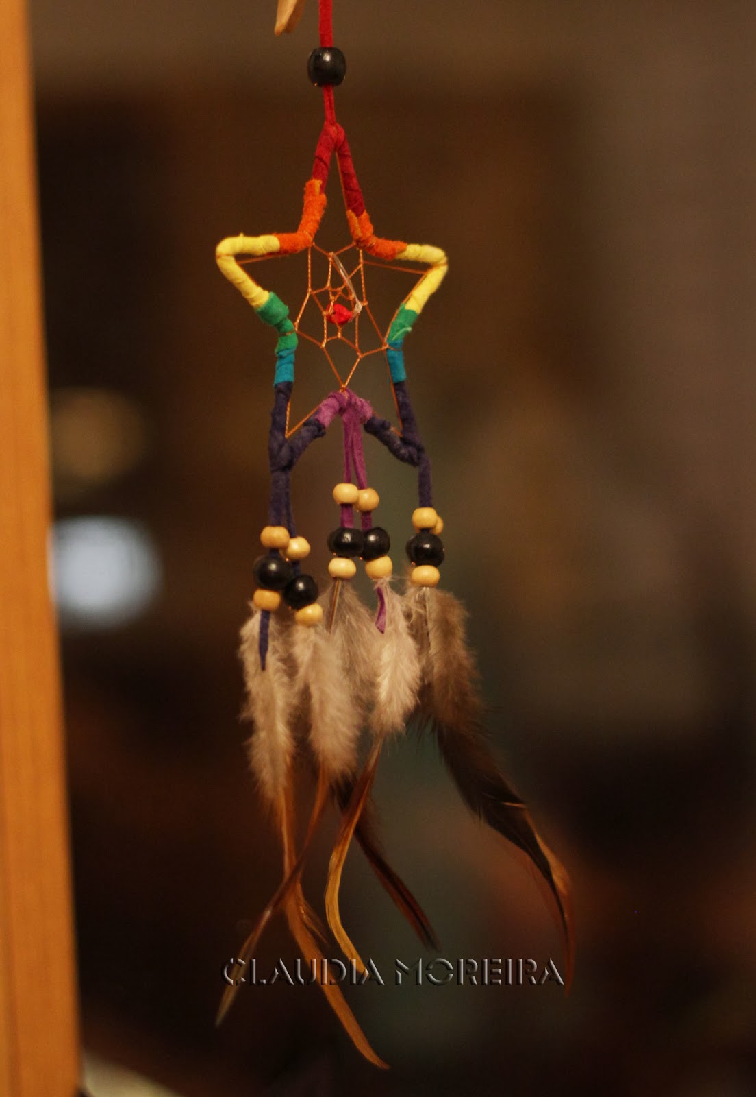 Tendo em conta que estas listas de coisas boas costuma ser enunciada após o sonho mau e não como prevenção, nestas férias comprei um "Caçador de sonhos" para cada uma das meninas. Mas estes já não são como os anteriores, que tinham sido mesmo feito pelos Índios de uma tribo longínqua e trazidos desde o outro lado do mundo. Mas são sem dúvida mais coloridos!