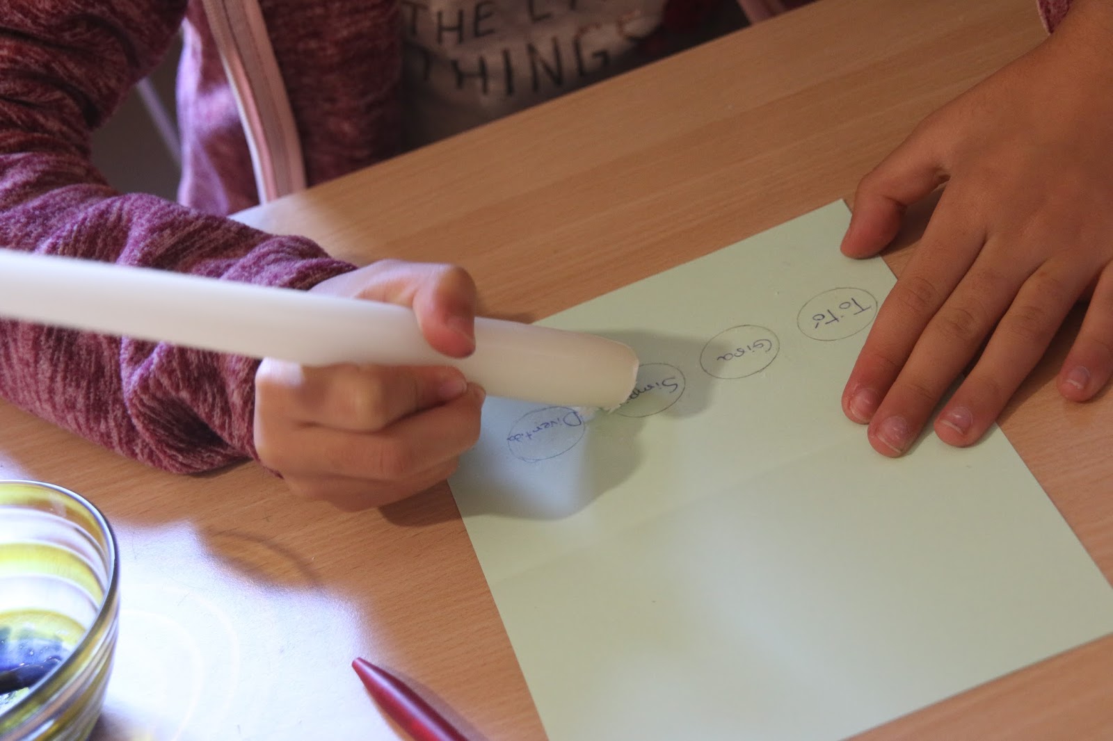 Sim porque a R já queria pintar sem escrever....depois já não se lembrava da vela...