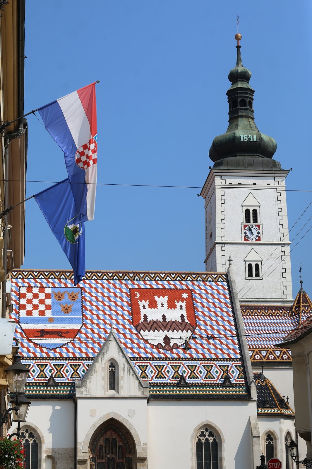Subimos por uma escadaria até à zona alta (Gradec) começando pela Igreja de S. Marco, famosa pelo telhado colorido. Pela rua encontravam-se alguns artistas. Ouvia-se o IMAGINE instrumental e mais ao longe o som duma concertina antiga e um coro masculino. Passámos por uma zona cheia de recantos para fotografar e esplanadas voltadas para a cidade, a chamada Strossmayerovo (Strossmartre, tendo a parte martre origem na famosa Montmartre parisience).